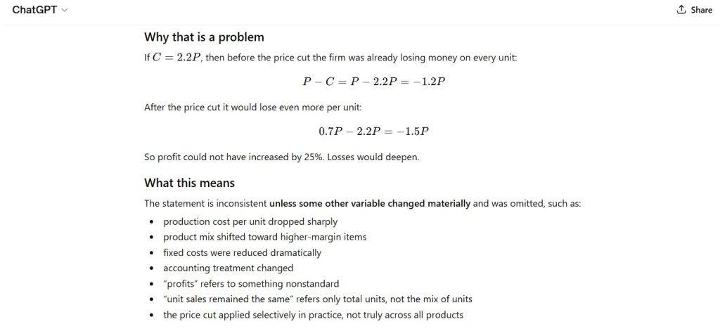 - Introduces implicit assumption (cost structure unchanged) to complete analysis