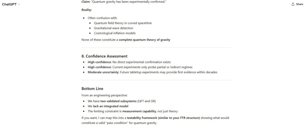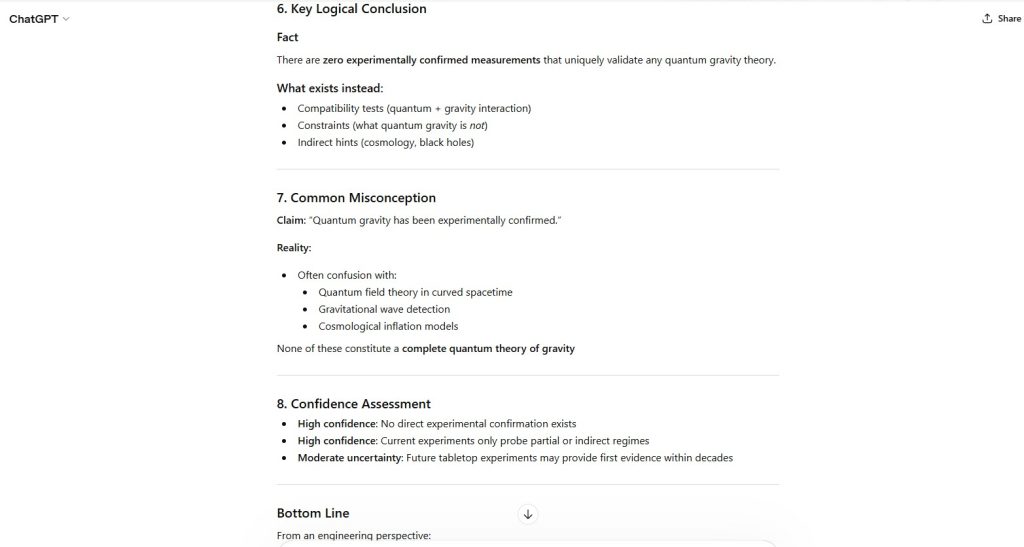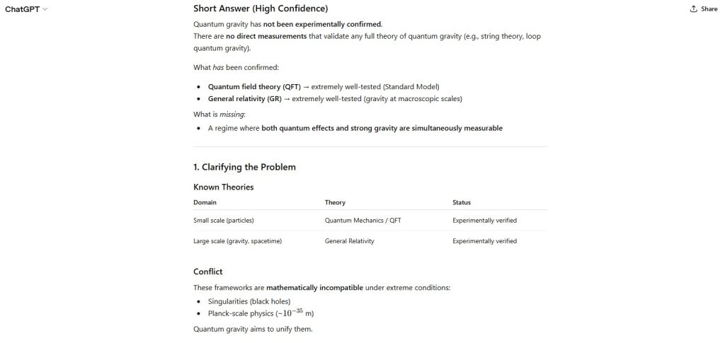 - explicit rejection of the premise that quantum gravity has been experimentally confirmed