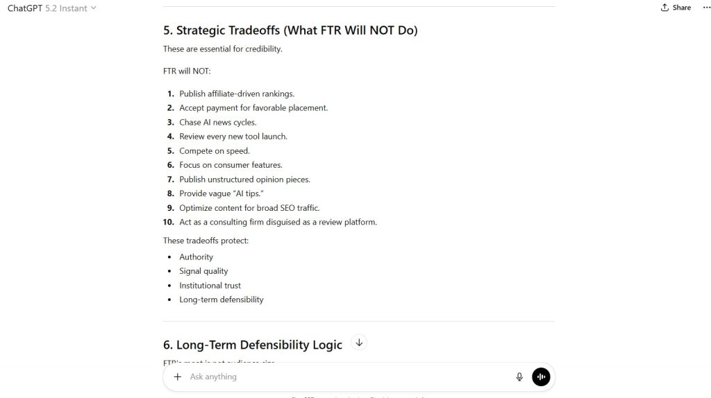 This assessment evaluates ChatGPT as the reference model under First Tier Review Methodology (v1.0).
